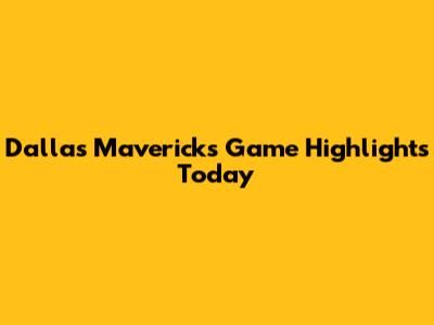 Dallas Mavericks Game Highlights Today