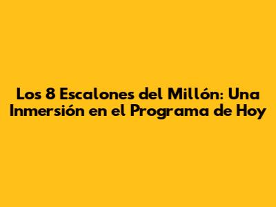 Los 8 Escalones Del Millón: Guía Detallada Del Programa De Hoy